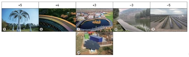 研究选取乡村不同空间类型下各因子排名前6位(较为满意)和后6位(较不满意)的图片,统计分析光伏设施引入不同空间类型中的视觉满意度。结果显示,乡村自然景观中的光伏设施图片共被评为较为满意19次,较不满意14次;乡村聚落景观中的光伏设施图片仅2次被评为较为满意,13次被评为较不满意;乡村生产景观中的光伏设施图片共9次被评为较为满意,3次被评为较不满意。