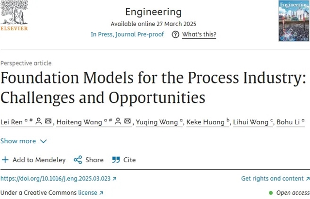 Lei Ren, Haiteng Wang, Yuqing Wang, Keke Huang, Lihui Wang, Bohu Li, Foundation Models for the Process Industry: Challenges and Opportunities, Engineering, 2025.
