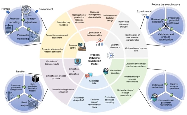 流程工业的生产过程高度复杂,融合了物理、化学、力学等多学科知识,涉及的工业数据类型多样,如传感器数据、图像、文本等,各数据模态之间具有强耦合特性。当前模型面临的关键挑战是如何在理解这些多模态数据的同时,准确建模显性与隐性的工业机理。未来,流程工业大模型需具备跨模态分析能力,在统一特征空间中联合表示多源数据与工业机制,并在此基础上实现高效推理,为建模、控制与优化任务提供理论支撑。