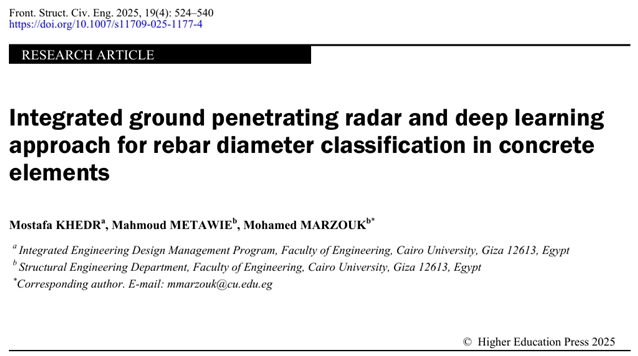 Mostafa KHEDR, Mahmoud METAWIE, Mohamed MARZOUK. Integrated ground penetrating radar and deep learning approach for rebar diameter classification in concrete elements. Front. Struct. Civ. Eng., 2025, 19(4): 524?540 https://doi.org/10.1007/s11709-025-1177-4