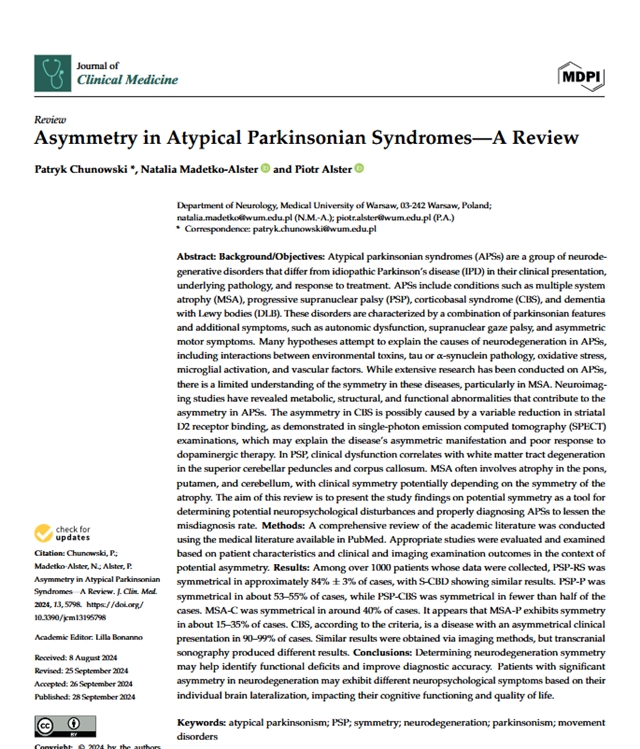 论文选题灵感:帕金森综合征研究新突破 | MDPI Journal of Clinical Medicine |