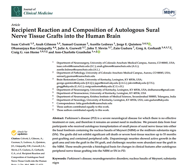 本文介绍了对四名参与者进行腓肠神经小块组织自体移植至含梅纳特基底核的基底前脑或中脑黑质的情况,旨在探究该移植手术为帕金森患者自体周围神经组织移植至梅纳特基底核或脑黑质后临床特征变化提供组织学依据。