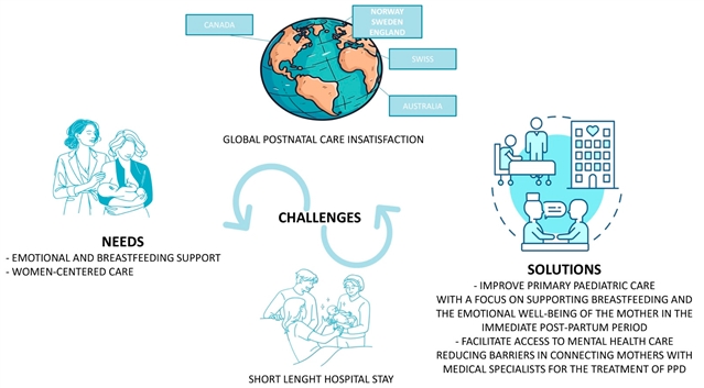 图 2. 产后需求、实际挑战和可能的解决方案。