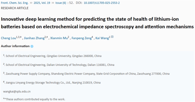 Cheng Lou, Jianhao Zhang, Xianmin Mu, Fanpeng Zeng, Kai Wang. Innovative deep learning method for predicting the state of health of lithium-ion batteries based on electrochemical impedance spectroscopy and attention mechanisms. Front. Chem. Sci. Eng., 2025, 19(6): 52https://doi.org/10.1007/s11705-025-2553-2