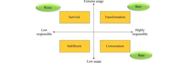 未来 GenAI 可能有以下情景。最佳情景(Transformation):高频且负责任使用,GenAI 成个性化学习助手,教育者转向培养高阶思维,但需应对技术依赖等问题。基准情景(Conversation):适度使用,GenAI 辅助传统教学,教育者需提供使用案例、评估技术效果,目前多数学生处于此情景。最差情景(Survival):高频且不负责任使用,导致学术不端、思维能力退化,需机构制定严格政策。冷漠情景(Indifferent):低频且不当使用,未发挥技术潜力,需教育者引导正确应用。