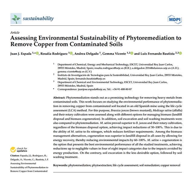 The main limitation of this work is the lack of actual field data on applications of M. sativa for copper removal. However, the results reported in this work can be a first step to advancing the research on soil phytoremediation. In this sense, inventory data and LCA results can be used as a benchmark for further studies in this field since they provide the analysis of a wide number of impacts, which is usually scarce in the literature. The main engineering application of our work is to provide LCA results that can help to identify environmental hotspots and to extrapolate our approach to other phytoremediation applications.