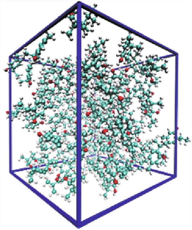 图1 平衡的THY-MEN11系统的快照。分子以Corey-Pauling-Koltun(CPK)模型显示(原子配色方案:C,青色;O,红色;H,白色)。