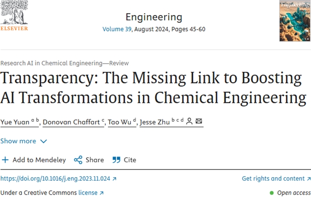 Yue Yuan, Donovan Chaffart, Tao Wu, Jesse Zhu. Transparency: The Missing Link to Boosting AI Transformations in Chemical Engineering. Engineering, 2024, 39(8): 45–60