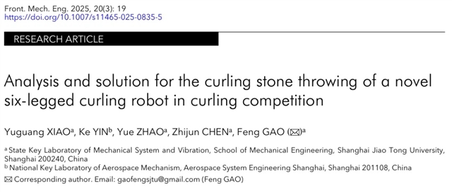 Yuguang XIAO(肖宇光), Ke YIN(尹科), Yue ZHAO(赵越), Zhijun CHEN(陈志军), Feng GAO(高峰). Analysis and solution for the curling stone throwing of a novel six-legged curling robot in curling competition. Front. Mech. Eng., 2025, 20(3): 19