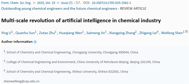 Ying Li, Quanhu Sun, Zutao Zhu, Huaqiang Wen, Saimeng Jin, Xiangping Zhang, Zhigang Lei, Weifeng Shen. Multi-scale revolution of artificial intelligence in chemical industry. Front. Chem. Sci. Eng., 2025, 19(7): 57 https://doi.org/10.1007/s11705-025-2562-1