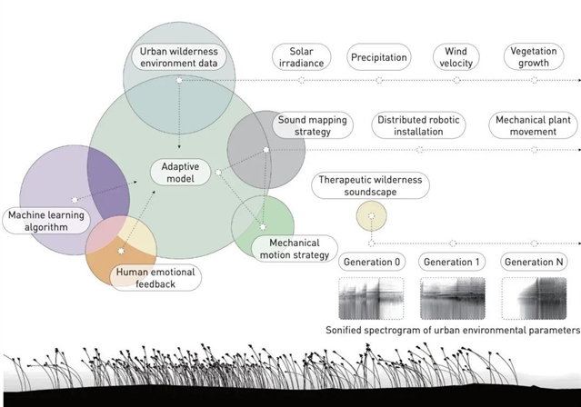 本文探讨了在技术驱动的社会中,如何通过感官设计创新构建具有疗愈功能的包容性与适应性城市环境。研究以莫里斯·梅洛-庞蒂(Maurice Merleau-Ponty)的知觉现象学及人类学“感官转向”(sensory turn)理论为基础,批判技术资本扩张导致的城市发展失衡与感官异化,并提出以身体感知作为连接人与环境的核心。文章通过“风之归宿”“盲人花园”和“荒野之息”三个实践项目,展示了将实时气候数据、城市色彩信息及荒野环境参数,经由创造性算法转化为多感官(尤其是听觉)景观体验的设计方法。这些实践旨在通过数据转译增强公众的环境感知与反思,为特定群体(如视障者)提供包容性设计解决方案,并探索了数字智能在景观设计中创造动态、交互式疗愈空间的潜力与局限。