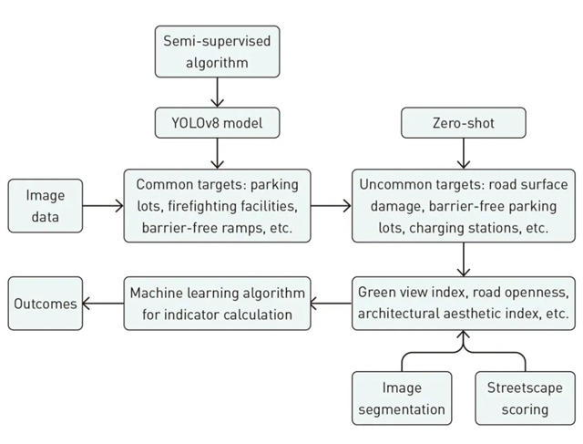 在视觉类指标方面,针对图像数据这一重要的评价数据来源,可结合深度学习算法进行不同尺度内的指标计算。最后,对各项指标进行汇总计算,形成最终结果,进而为生成下游报告提供数据支持。