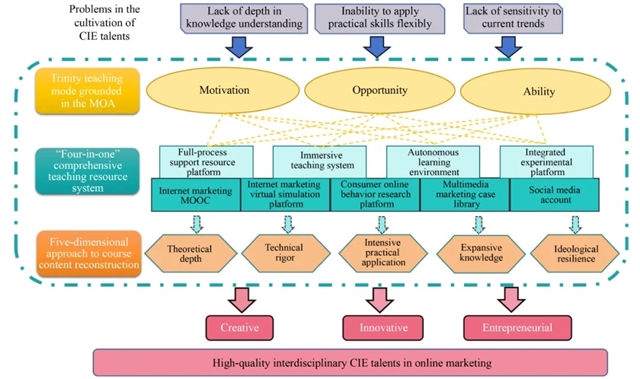 武汉大学黄敏学教授团队在Frontiers of Digital Education(《数字教育前沿(英文)》)期刊上发表了一篇题为A Trinity Teaching Mode Grounded in the MOA Framework: Insights from Wuhan University’s Internet Marketing Course的文章,探讨了数字经济时代武汉大学互联网营销课程基于MOA(动机、机会、能力)框架构建“三位一体”教学模式,并通过“四位一体”教学资源系统和五维内容改革,培养具创新、创业能力的复合型人才。