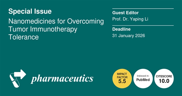 Pharmaceutics:中国科学院上海药物研究所李亚平教授领衔特刊 — 克服肿瘤免疫治疗耐受的纳米药物|MDPI特刊征稿 |