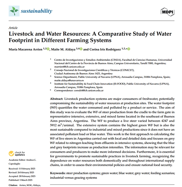 本文对阿根廷布宜诺斯艾利斯省东南部的密集型、混合型和放牧型三种不同农业系统中活牛的绿色、蓝色和灰色水足迹进行了比较研究,探讨了不同畜牧系统对水资源的影响的差异。