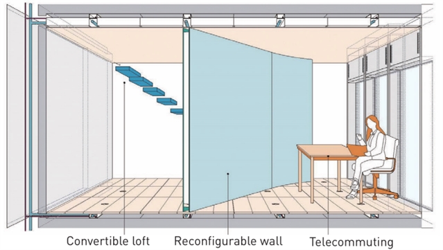 生活便利场景:可变住宅示意图 © Rui Guan, Vanke 2049 Future City Laboratory