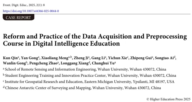 近日,武汉大学秦昆、龚龑、孟小亮等在Frontiers of Digital Education(《数字教育前沿(英文)》)期刊上发表了一篇题为Reform and Practice of the Data Acquisition and Preprocessing Course in Digital Intelligence Education (《数据采集与预处理数智教育课程的教学改革与实践》)的文章,探讨了武汉大学数据采集与预处理课程在数智教育中的改革与实践,涵盖多种数据类型的采集与预处理及基于开放地球数据引擎的教学平台开发等内容。