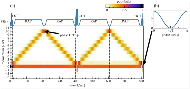 本文研究了原子喷泉干涉仪对原子初始速度变化及脉冲幅度偏离最优值的鲁棒性。我们数值模拟了动量空间中最大分离度为20hk 的干涉仪动力学过程,并绘制出信号对比度随初始速度分布方差和激光场振幅值变化的预期曲线。研究表明,与常用的π/2和π脉冲序列方案相比,基于快速绝热过程的激发方案能显著提升预期信号对比度。通过采用最优控制理论识别出在脉冲幅度和速度系综平均上表现良好的分裂与交换脉冲,我们进一步实现了鲁棒性的实质性提升。这些结果证明了最优控制技术对未来原子喷泉干涉测量实际应用的显著增强能力。