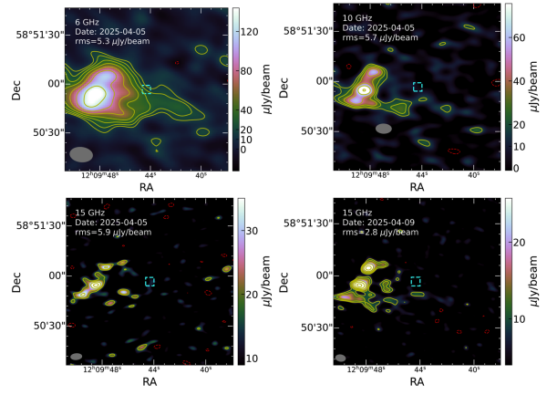 美国甚大阵射电望远镜图像显示,在不同频段和观测时段均未在FRB 20250316A位置检测到持续射电源。
