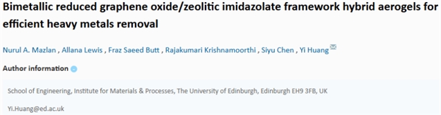 论文标题:Bimetallic reduced graphene oxide/zeolitic imidazolate framework hybrid aerogels for efficient heavy metals removal
