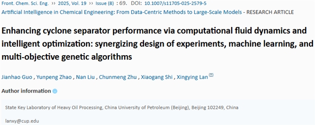 FCSE | 前沿研究:基于计算流体动力学与智能优化提升旋风分离器性能——融合实验设计、机器学习与多目标遗传算法 |