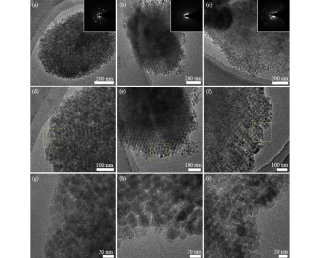 图2 (a,d)3DZ5_C,(b,e)3DZ5_S/C和(c,f)3DZ5_S的透射电子显微镜图像;(g–i)分别为(d–f)中选定区域的高倍透射电子显微镜图像。