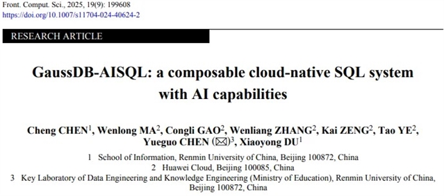 Cheng CHEN, Wenlong MA, Congli GAO, Wenliang ZHANG, Kai ZENG, Tao YE, Yueguo CHEN, Xiaoyong DU. GaussDB-AISQL: a composable cloud-native SQL system with AI capabilities. Front. Comput. Sci., 2025, 19(9): 199608