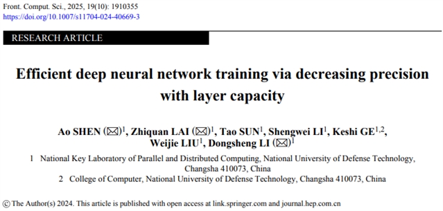 Ao SHEN, Zhiquan LAI, Tao SUN, Shengwei LI, Keshi GE, Weijie LIU, Dongsheng LI Efficient deep neural network training via decreasing precision with layer capacity[J]. Frontiers of Computer Science, 2025, 19(10): 1910355