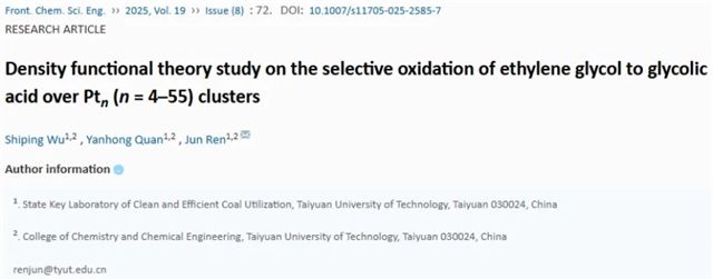 Shiping Wu, Yanhong Quan, Jun Ren. Density functional theory study on the selective oxidation of ethylene glycol to glycolic acid over Ptn (n = 4–55) clusters. Front. Chem. Sci. Eng., 2025, 19(8): 72 https://doi.org/10.1007/s11705-025-2585-7
