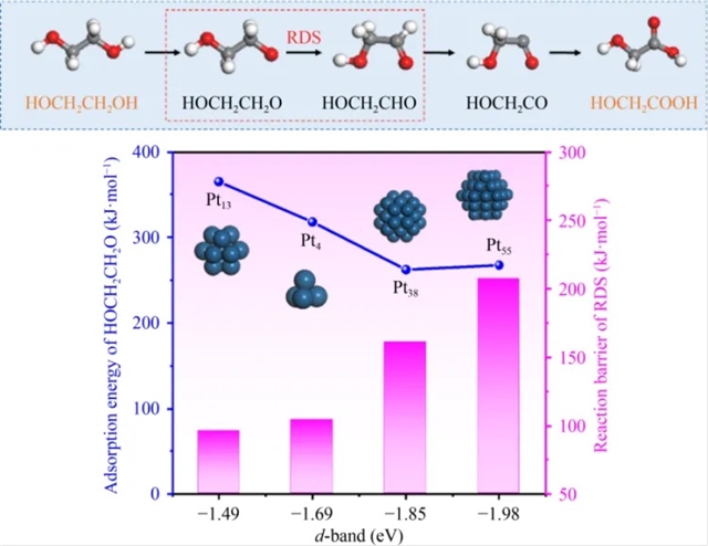 论文标题:Density functional theory study on the selective oxidation of ethylene glycol to glycolic acid over Ptn (n = 4–55) clusters