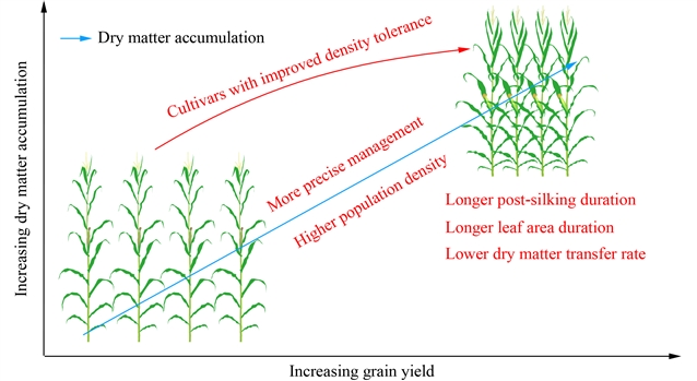 由于全球人口持续增长,且耕地资源有限,粮食安全相关问题日益受到关注。玉米是我国产量最高、种植最广泛的粮食作物,在各类作物中具有最高的产量潜力。提高玉米单位面积产量已成为我国农业发展的核心目标之一。本研究总结了当前限制玉米产量及资源利用效率的关键制约因素,包括太阳辐射、温度、水分、土壤资源及极端天气事件等,以及玉米生产过程中存在的主要问题,如品种选择不当、种植密度偏低、施肥方式不合理等。在此基础上,基于量化设计原则对玉米群体进行优化,通过使作物种植密度与太阳辐射水平相匹配、群体结构与适宜品种相匹配、耕层-根系-冠层功能与籽粒产量相匹配,确保玉米生产中籽粒产量和资源利用效率的同步提升。这些措施能够显著提高玉米生产水平及相关经济效益,降低生产成本和环境负荷,为我国实现农业可持续发展提供科学依据和技术支撑。
