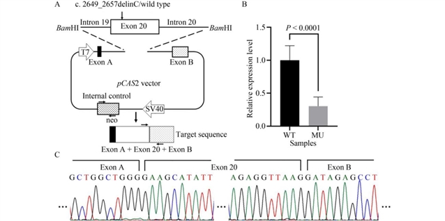 图2 移码缺失的迷你基因实验与qPCR分析