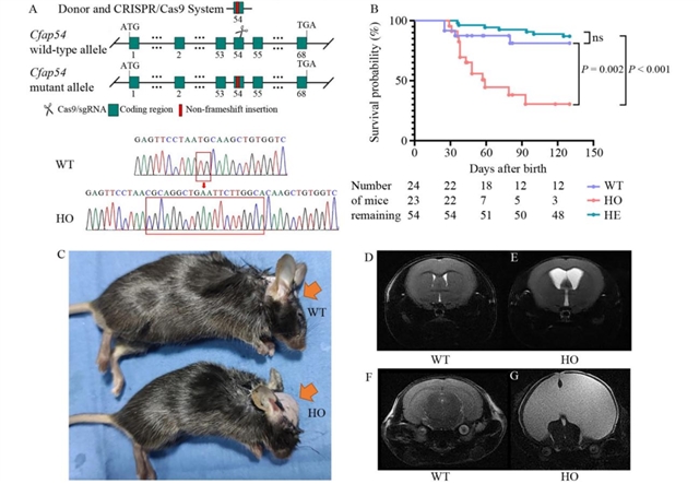 图3 Cfap54基因敲入小鼠模型的脑积水表型
