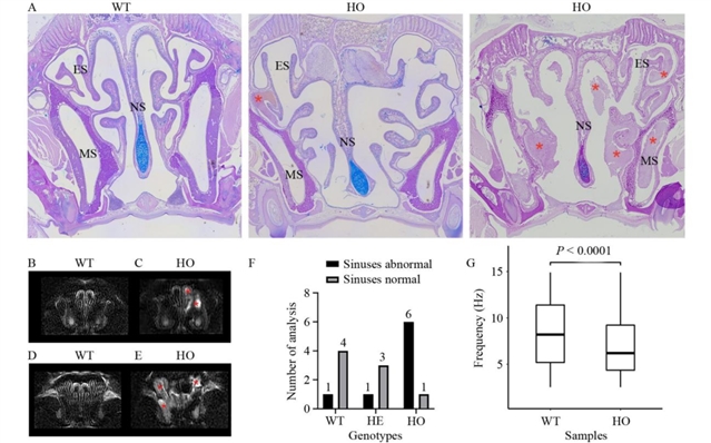 图4 Cfap54基因敲入小鼠模型的鼻窦炎表型