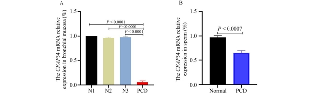 图7 原发性纤毛运动障碍(PCD)患者与对照者的支气管组织及精子中CFAP54 mRNA表达分析