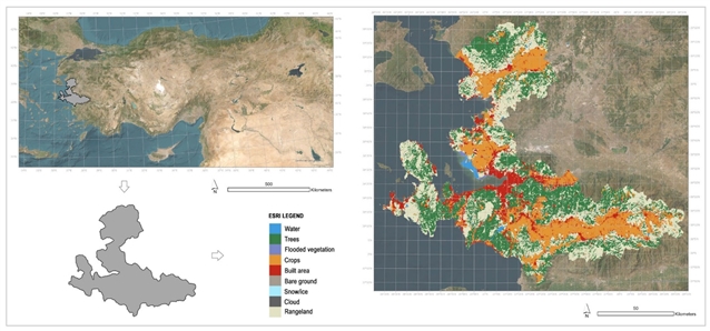 研究采用了生态系统服务评估工具InVEST (生态系统服务与权衡综合评估) 模型和地理信息系统 (GIS) 技术,对伊兹密尔地区的生态系统服务进行了详细的评估和空间分析。研究主要关注了三个关键的生态系统服务:栖息地质量、碳储存与固碳能力、以及泥沙输送比率。这些服务的选择基于其对环境规制的重要性、对城市土地转换的敏感性以及可靠数据的可获得性。研究使用了2023年的土地利用和土地覆盖的数据作为主要输入。这些数据来自ESRI平台,具有10米分辨率,覆盖了伊兹密尔省的行政边界。研究对原始数据进行了重新分类,以适应生态系统服务评估的需要。