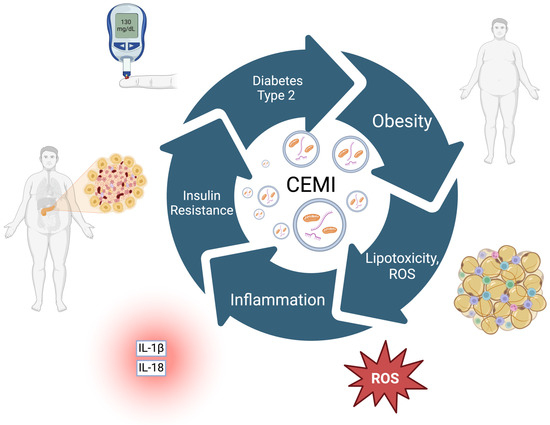 •代谢紊乱(糖尿病/肥胖):肥胖患者脂肪细胞释放的CEMI通过mtDNA激活炎症小体,加剧胰岛素抵抗。