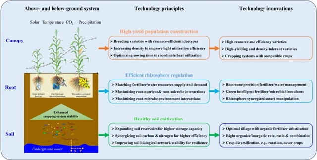 2. 构建绿色增产增效技术三大核心路径:高产群体构建、根际调控与健康土壤培育;
