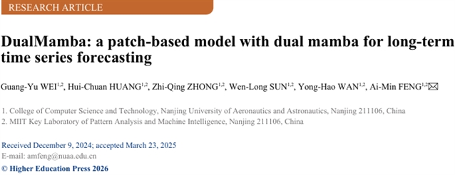| FCS 文章精要 | 南京航空航天大学冯爱民等,DualMamba:基于双Mamba架构及补丁划分的长期时间序列预测方法 |