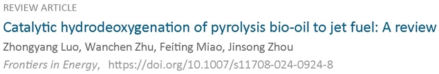 Zhongyang Luo, Wanchen Zhu, Feiting Miao, Jinsong Zhou.Catalytic hydrodeoxygenation of pyrolysis bio-oil to jet fuel: A review. Front. Energy, https://doi.org/10.1007/s11708-024-0924-8