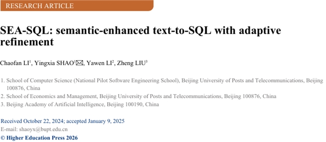 | FCS 文章精要 | 北京邮电大学邵蓥侠等,SEA-SQL:基于语义增强的自适应调整的文本到SQL技术 |