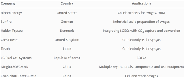 表1 固体氧化物电解池制造商