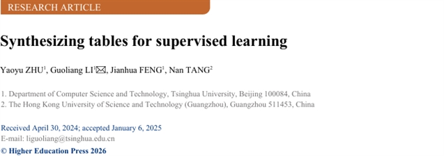 Yaoyu ZHU, Guoliang LI, Jianhua FENG, Nan TANG. Synthesizing tables for supervised learning.Front. Comput.Sci., 2026, 20(3): 2003603