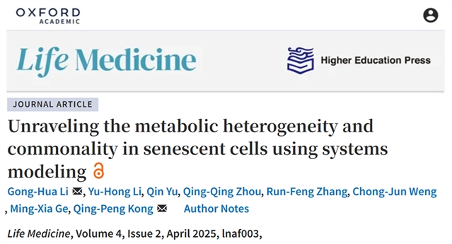2025年4月,中国科学院昆明动物研究所孔庆鹏课题组在Life Medicine杂志在线发表了题为Unraveling the metabolic heterogeneity and commonality in senescent cells using systems modeling的研究论文。