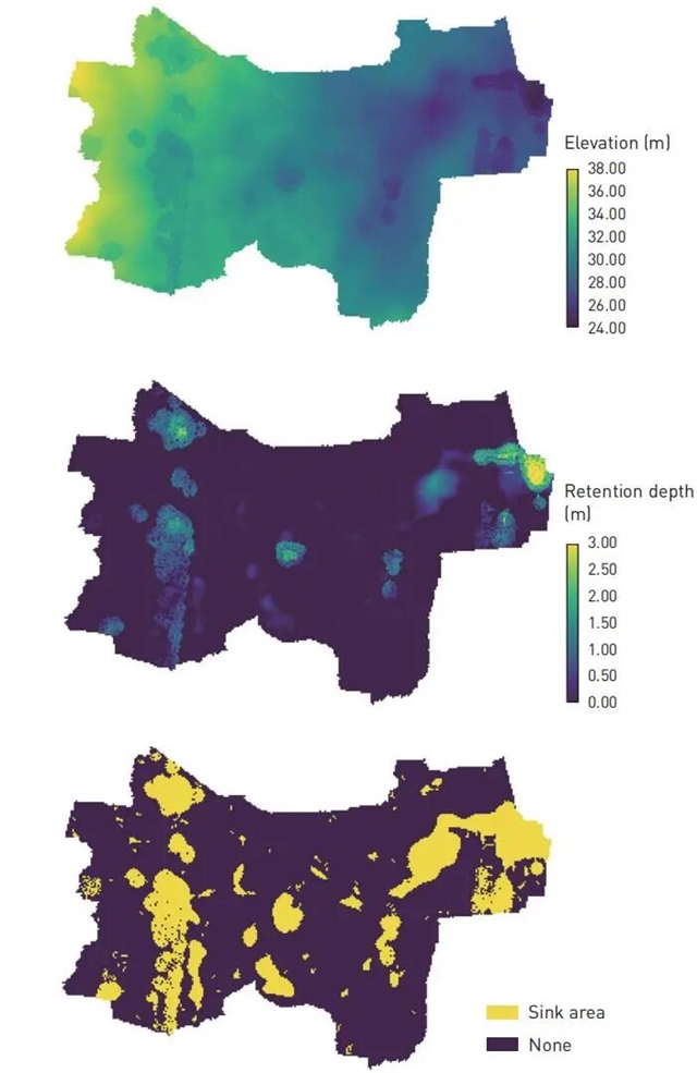 解码可视化示例:调蓄深度图与洼地区域图 © 许瀚文,马克·兰德尔,侯庆贺