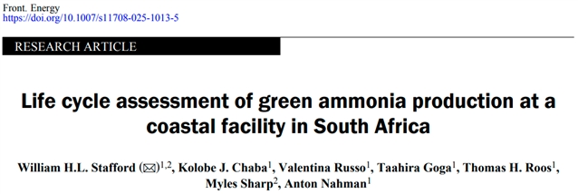 William H.L. Stafford, Kolobe J. Chaba, Valentina Russo, Taahira Goga, Thomas H. Roos, Myles Sharp, Anton Nahman. Life cycle assessment of green ammonia production at a coastal facility in South Africa. Front. Energy,https://doi.org/10.1007/s11708-025-1013-5