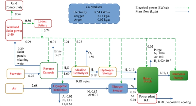 图2 1千克绿色氨生产的工艺流程图