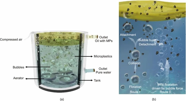 研究团队指出,该方法的核心在于利用微塑料的亲油性和疏水性行为,通过气泡的作用将微塑料带到水面上的油层中。与传统的泡沫浮选不同,该方法不需要添加化学试剂,也不会因气泡破裂而导致微塑料重新回到水中。此外,该方法对微塑料的粒径和密度适应性较强,能够有效捕获不同尺寸和密度的微塑料。