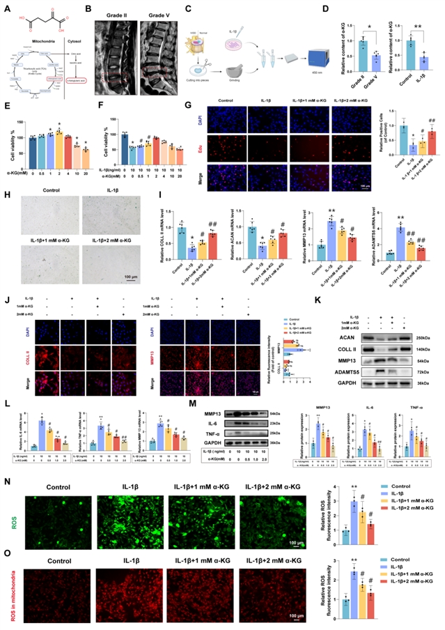 核心发现1:α-KG水平在退变椎间盘组织中显著降低,其补充能逆转退变表型