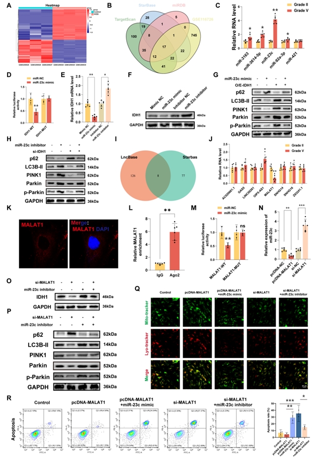 核心发现5:lncRNA MALAT1作为“分子海绵”吸附miR-23c,解除其对IDH1 mRNA的抑制